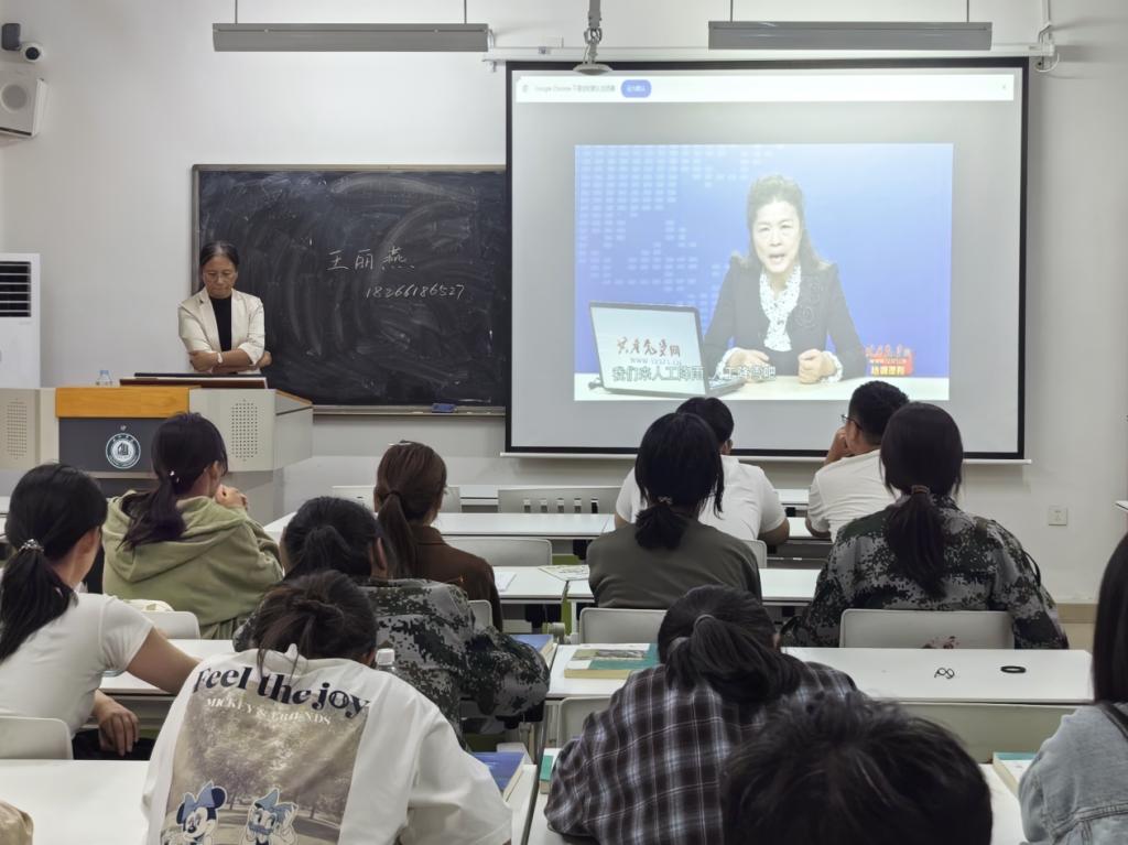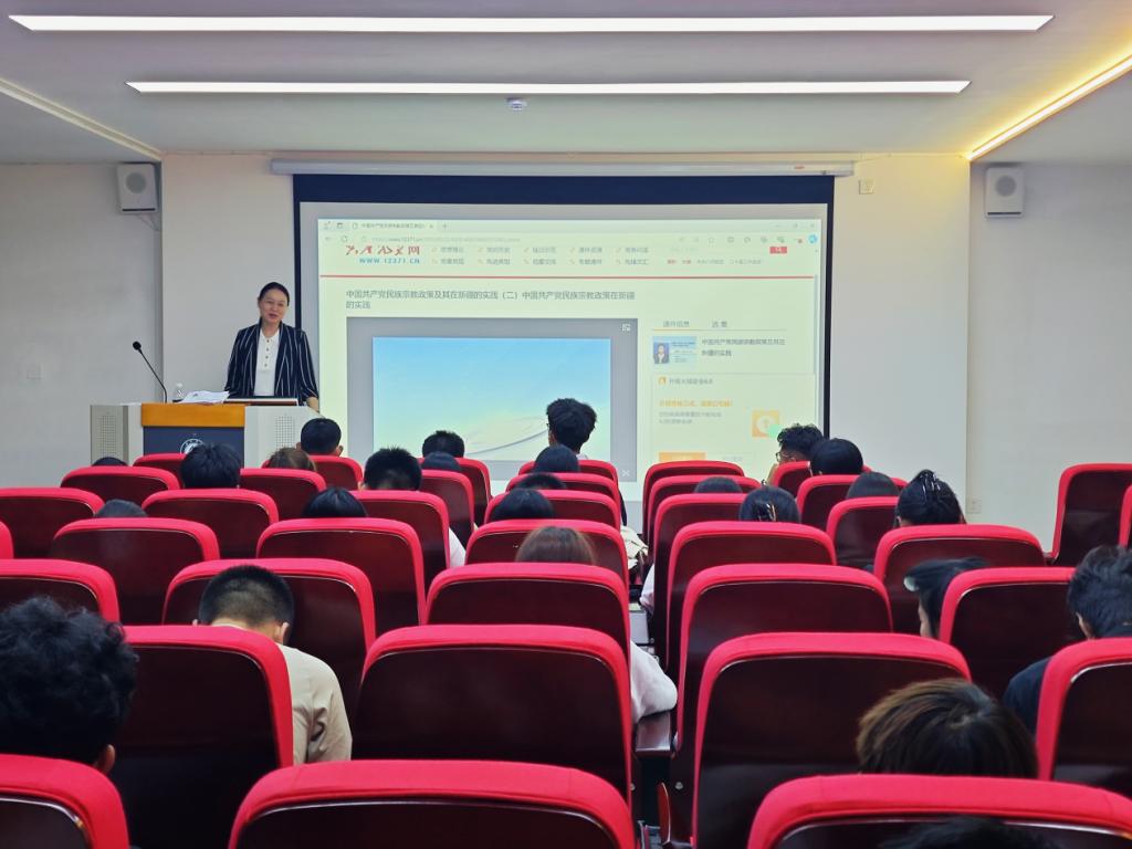 王丽燕围绕“民族宗教与大学生成长”主题进行专题分享。她立足大学生认知特点,深入阐释“宗教不得干预教育”基本原则,明确指出非法宗教活动的危害性,要求同学们切实提高对宗教极端思想的鉴别能力。同时强调要正确处理学业与校园实践活动的关系,在多元文化交流中不断提升文化素养和思想水平。